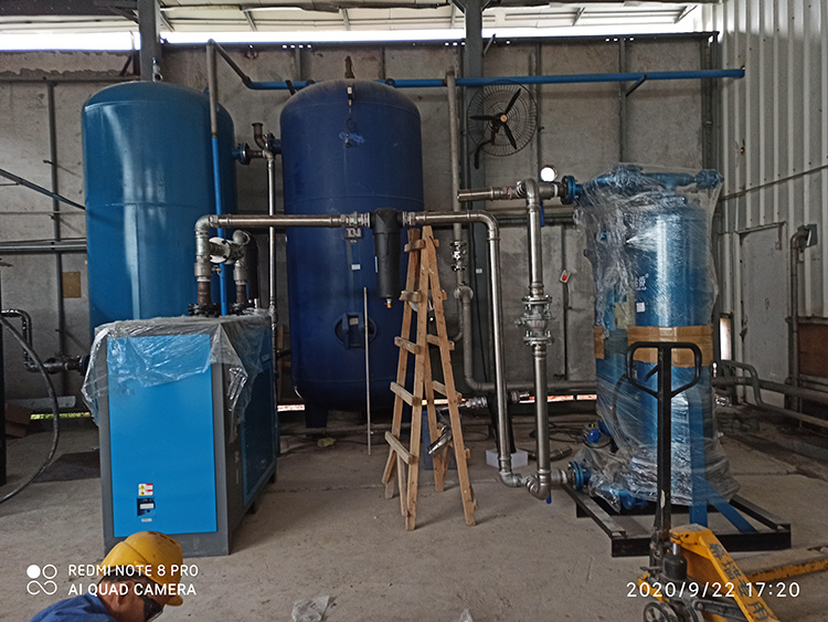 岳陽客戶訂購的制氮機一套安裝已經(jīng)完成,純度99.99%,包括螺桿空壓機,儲氣罐,精密過濾器,壓縮空氣管道全套安裝,運行了三年,未出什么故障。